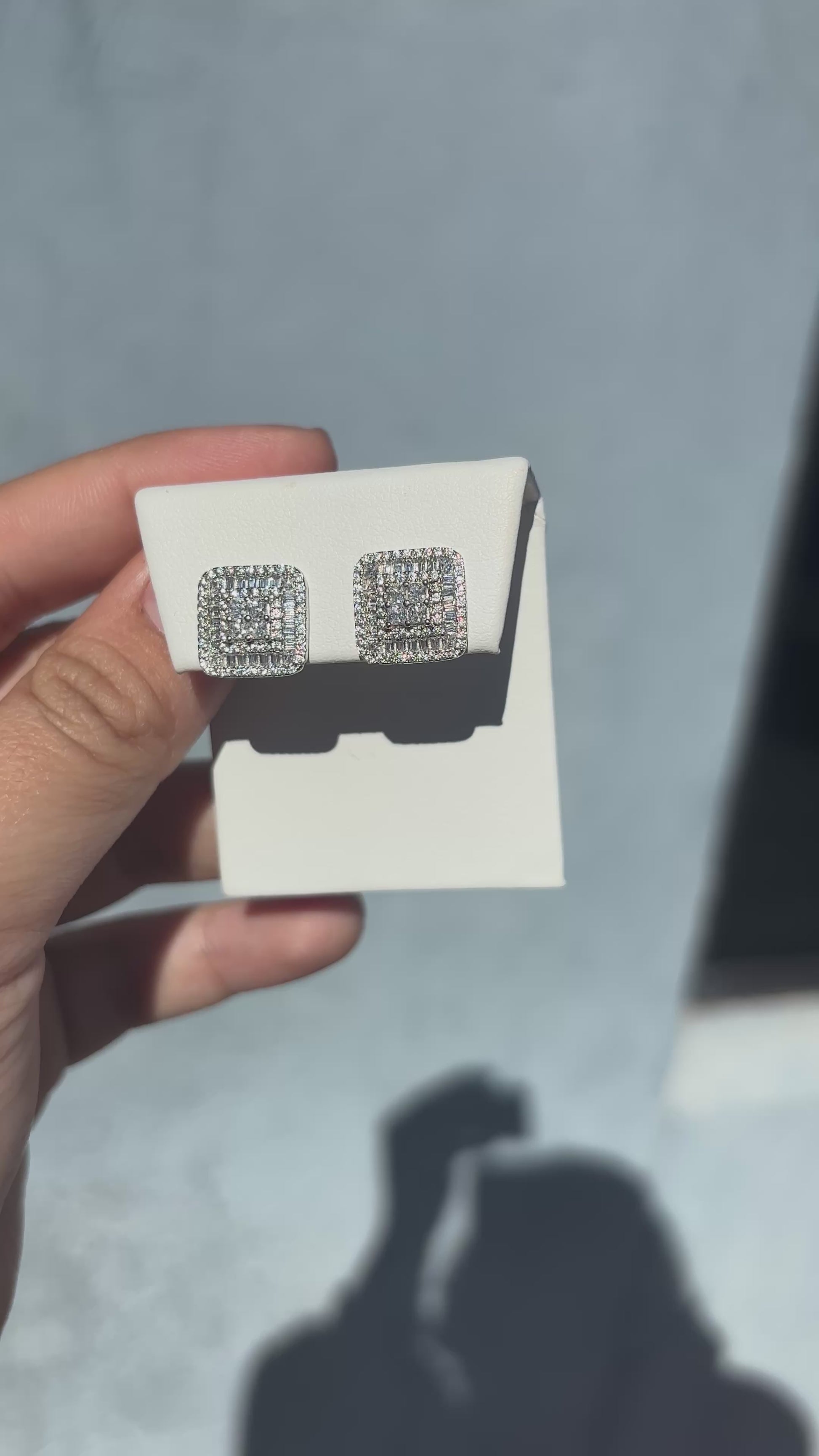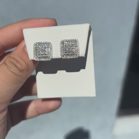 Precision Baguette and Princess cut Diamond Setting give these earrings a big bling shine. Unisex jewelry style that can be worn by Men or Women. Order your iced-out earrings today.