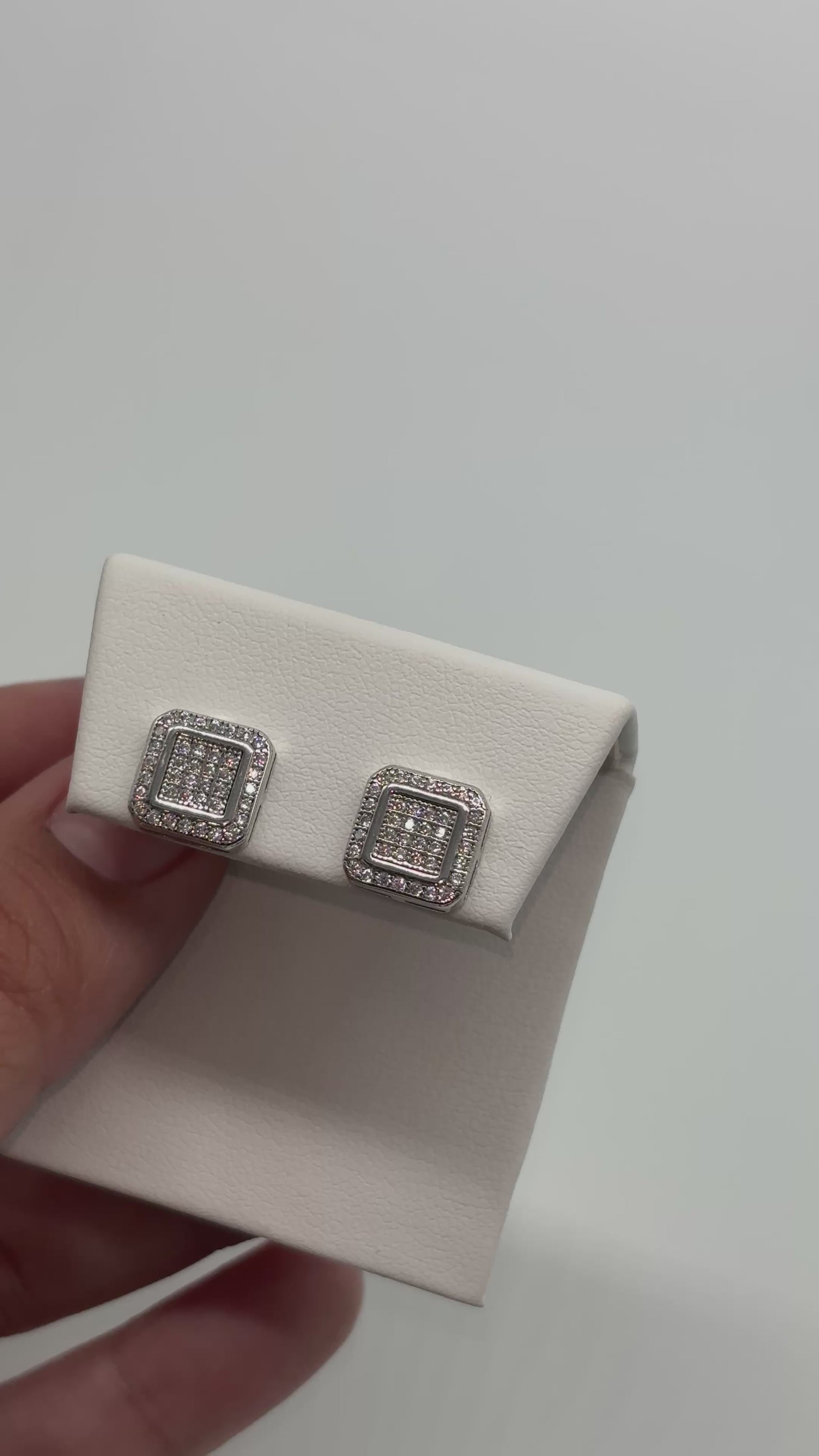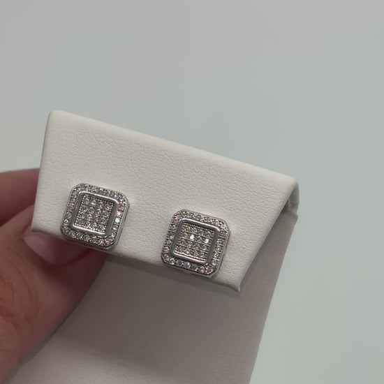 - Stone: Square frames are set with multiple rows of sparkling round CZ diamonds.